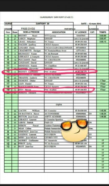 Résultat du cyclo cross de tonnerre: